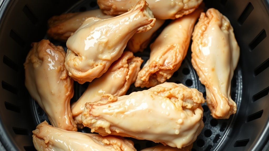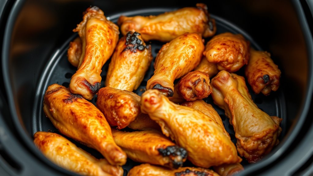 Did you know that certain foods can cause smoking or damage your air fryer? You should avoid food incompatibilities like greasy bacon or wet batter, which can create messes or harm the appliance. Instead, consider ingredient substitutions such as using cornstarch instead of flour for crispy coatings. Stay mindful of these tips to make certain of safe, efficient cooking, and enjoy your air frying experience without unnecessary mishaps.