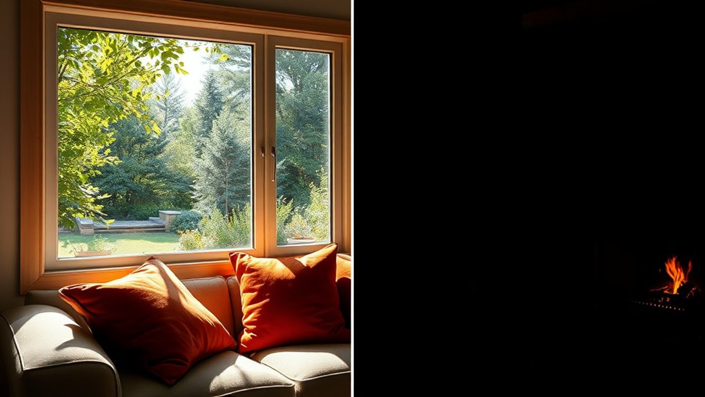 Additionally, rooms without windows often lack ventilation, which can lead to stale air and higher humidity levels. This may affect your comfort and indoor air quality, especially in spaces where fresh air exchange is limited. This is where ventilation systems become important for maintaining a healthy indoor environment. Conversely, a window allows for natural ventilation, helping you regulate air quality and temperature more effectively. It gives you more control over the environment, which can be vital for your health and comfort. Ultimately, your decision depends on your priorities: if you value visibility and natural light, a window is a clear advantage. But if you’re focused on maximizing energy efficiency and heat retention, a windowless space might serve you better—although at the expense of natural light and a connection to the outdoors.