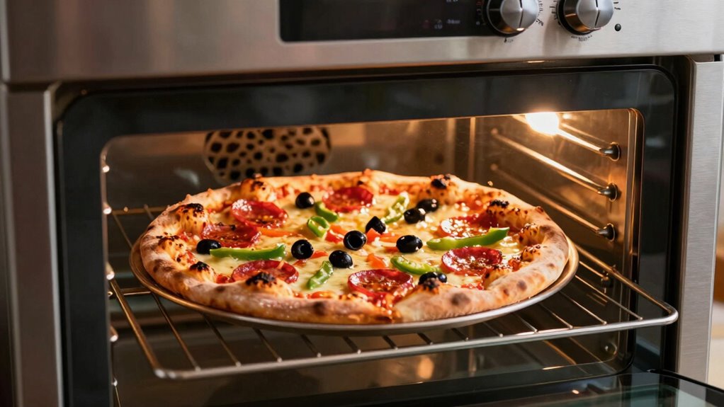 With pizza functions, the oven often preheats faster and maintains consistent heat, which is essential for reproducible results. When you select a dedicated pizza setting, the oven might activate specific heating elements or adjust the airflow to optimize heat distribution. This can help you avoid uneven cooking, which is common in standard settings. The oven’s ability to reach and sustain a high oven temperature is fundamental here. If your countertop oven can’t reach the necessary heat levels, your crust might turn out pale or soggy, even if you follow all the other steps. Additionally, some ovens include precise oven temperature controls, allowing for more accurate adjustments tailored to your pizza style. Proper heat management is crucial for achieving that perfect balance between a crispy crust and fully cooked toppings. Effective heat distribution is also key to ensuring the entire pizza is cooked evenly, which many pizza functions aim to improve.