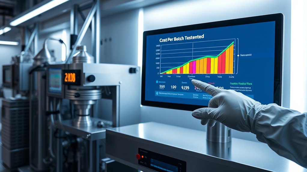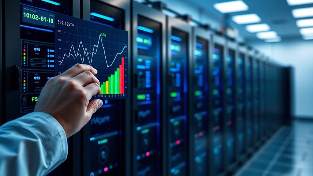 Benchmarking techniques for energy efficiency rely on standardized metrics and measurement protocols that enable consistent comparisons across systems. You should focus on metrics like energy consumption per batch or per task, which provide clear benchmarks for performance evaluation. Cost per batch tested is a valuable metric, capturing the total energy used during processing, allowing you to assess efficiency effectively. To guarantee accuracy, use calibrated wattmeters and maintain uniform workload conditions across tests. Incorporating metrics such as Energy Usage Intensity (EUI) and Power Usage Effectiveness (PUE) helps evaluate energy efficiency in data centers and high-performance environments. These benchmarking frameworks combine hardware measurements and software profiling, giving you reliable, repeatable data to inform energy optimization efforts and compare different systems accurately.