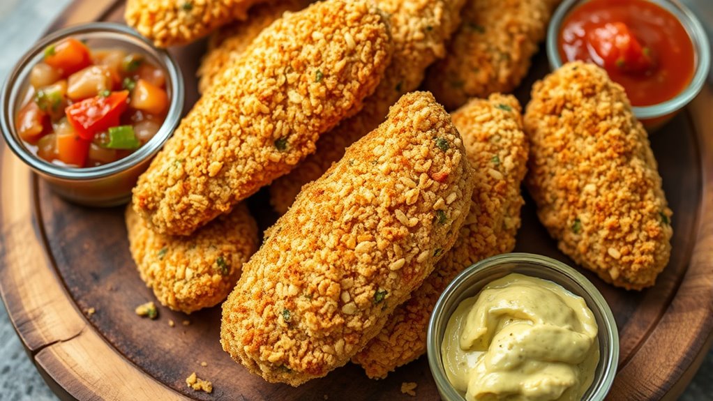 Switching to allergen-friendly breadings keeps your meals safe and delicious. Did you know that nearly 15 million Americans have food allergies, making allergy-conscious choices more important than ever? By exploring nut-free and dairy-free options, you guarantee everyone can enjoy crispy, flavorful dishes without worry. With a little creativity and the right recipes, you’ll find that allergen-friendly breadings are just as satisfying—if not more so—than traditional ones. Happy cooking!