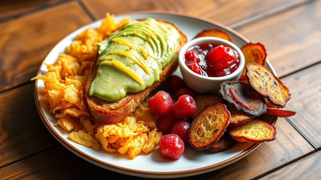 Imagine transforming your breakfast into a masterpiece with just a sprinkle! When it comes to vegan toppings, you can’t go wrong with low-calorie options like fresh berries, sliced cucumbers, or cherry tomatoes. These toppings add vibrant flavor and crunch without piling on calories. For an extra touch, try herbs like basil or parsley. They’re simple, healthy, and elevate your meal, proving that less truly is more in the world of vegan toppings.