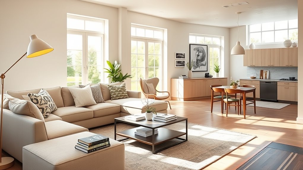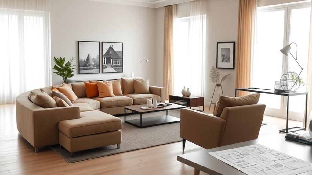 To choose the right size, you need to take into account how you’ll use your space and what makes you comfortable. Think about your daily routines and which areas you need for work, relaxation, or storage. Balancing these needs helps guarantee your home feels just right for your lifestyle.