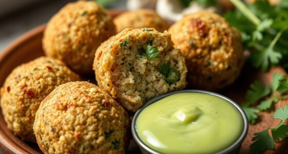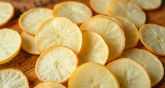 To make homemade granola clusters with less sugar, choose wholesome ingredients like oats, nuts, and seeds, and use natural sweeteners such as honey, maple syrup, or mashed bananas sparingly. Balance flavors with spices like cinnamon and vanilla to enhance taste without added sugar. Properly mix and bind the ingredients, then bake for crispy clusters. Keep them fresh in airtight containers. For tips on customizing and storing your clusters, continue exploring how to create the perfect healthy snack.