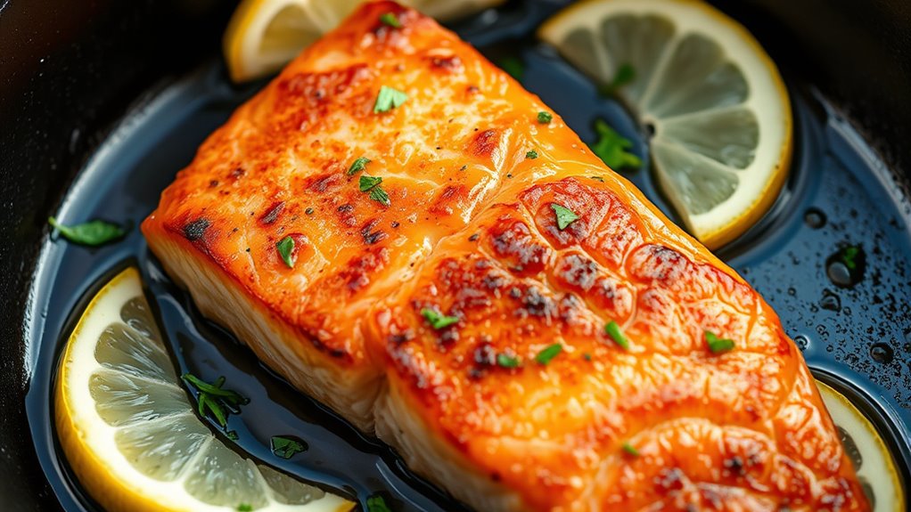 Now that you know how to cook salmon with perfectly crispy skin, you’re all set to impress at your next dinner. Remember, patience is key—don’t rush the process, or you’ll end up with soggy skin. Think of it as your own culinary quest, much like a knight seeking the perfect armor. With these tips, you’ll master this dish faster than you can say “Eureka!” So, get that skillet hot and enjoy your delicious, restaurant-quality salmon.