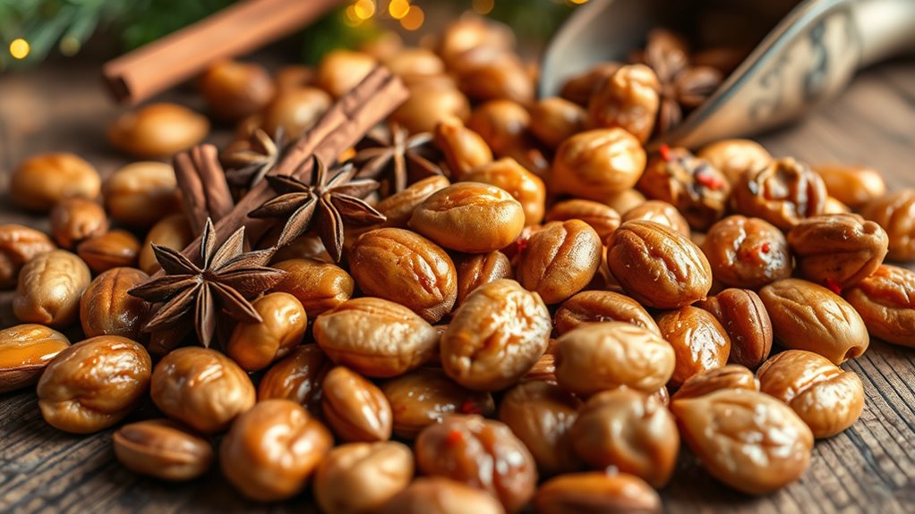 Now that you’ve mastered the art of spice roasting, your holiday gifts will sparkle like twinkling lights on a winter night. Each nut, coated in your flavorful blend, becomes a tiny treasure chest of warmth and cheer. As you package your creations, imagine them as edible gifts wrapped in love and spice, ready to brighten someone’s season. With your touch, these roasted nuts will become holiday magic, turning simple treats into unforgettable moments of joy.