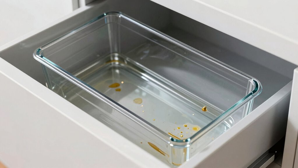 Before you start implementing the Water-in-Drawer Technique, verify the drawer area is clean and free of debris. Proper drawer organization is essential for effective grease management. Begin by removing any old items or clutter, then wipe down the interior thoroughly. Consider customizing your drawer layout to fit the water container securely, using dividers or trays if needed. This helps prevent shifting and spills during use. Ensure the surface is smooth and dry before proceeding. Good drawer customization makes maintenance easier and keeps everything tidy. Additionally, understanding best practices for maintenance can help prolong the effectiveness of your grease management system. Regular inspection and timely cleaning are key components of a clean-home system that maintains efficiency over time. Taking these steps now will streamline the process and improve the overall effectiveness of your grease management system. Effective organization is a key principle in maximizing your truck bed’s potential for every adventure.