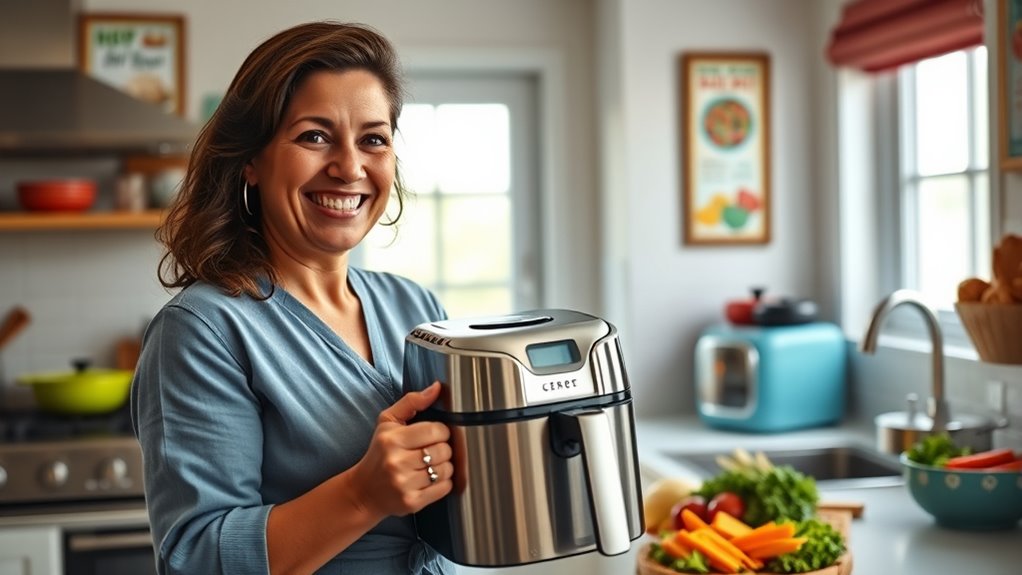 If you’re curious how someone shifts from loving traditional deep-frying to embracing healthier options, Maria’s story shows it’s possible. She grew up with crispy, flavorful favorites but wanted a better way to enjoy them. By exploring the air fryer, she found quick, satisfying results with less oil and mess. Her success inspired her to share tips and recipes, proving you can enjoy crispy foods guilt-free. Keep exploring, and you’ll discover how she made it happen.