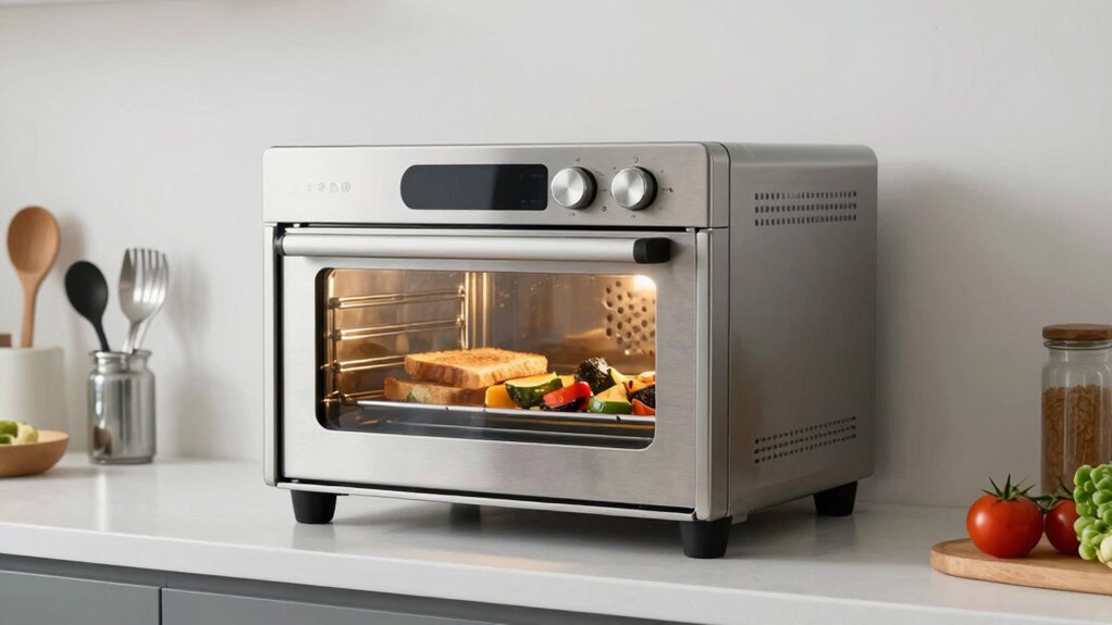 You’re in luck! Single-door countertop ovens are surprisingly energy-efficient, making them perfect for saving on electricity bills. They focus heat precisely where needed, boosting energy savings and reducing waste. Plus, their simple design often means better appliance longevity. So, if you’re after a compact, cost-effective, and eco-friendly cooking companion, these ovens deliver, helping you stay green and save money without sacrificing performance.