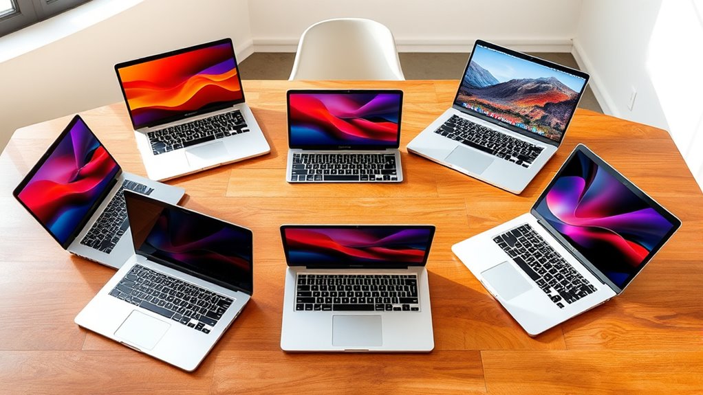 If you’re choosing the best 16-inch MacBook Pro in 2025, I suggest considering options with the latest M4 Max chip for top performance, especially for demanding tasks like video editing and software development. The display quality, memory, and storage are also vital—aim for high RAM and fast SSDs to guarantee smooth multitasking. Heavier models like the M3 Max offer powerful specs at a lower cost. Keep exploring to discover which configuration suits your needs best.