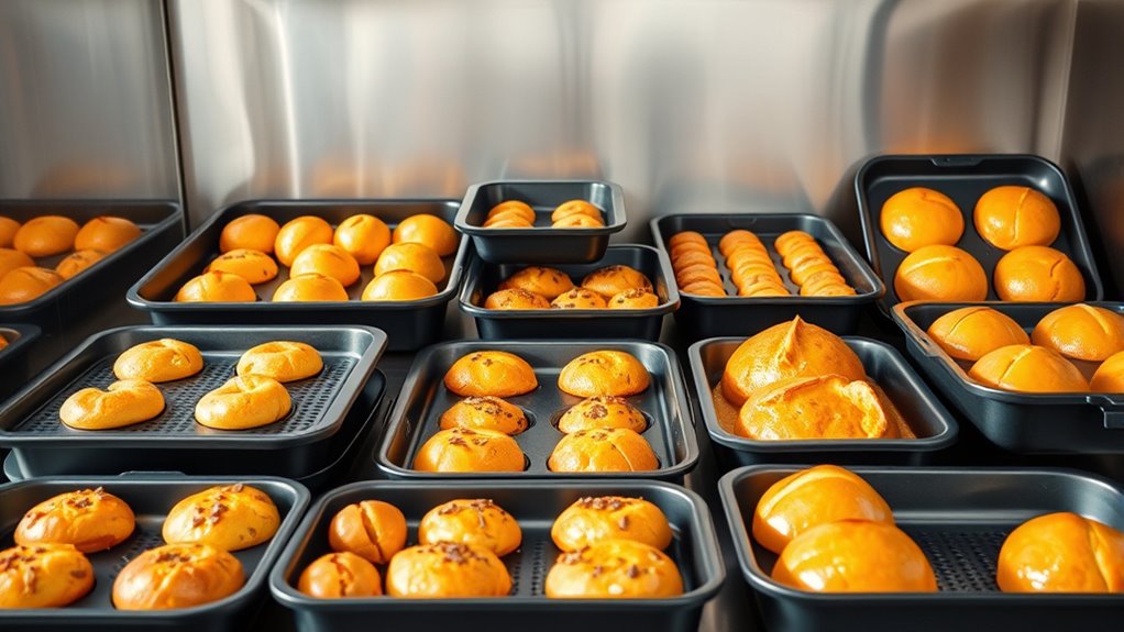 - Choose pans with non-stick coatings or mesh designs that promote airflow for crispy, golden-brown baked goods.
