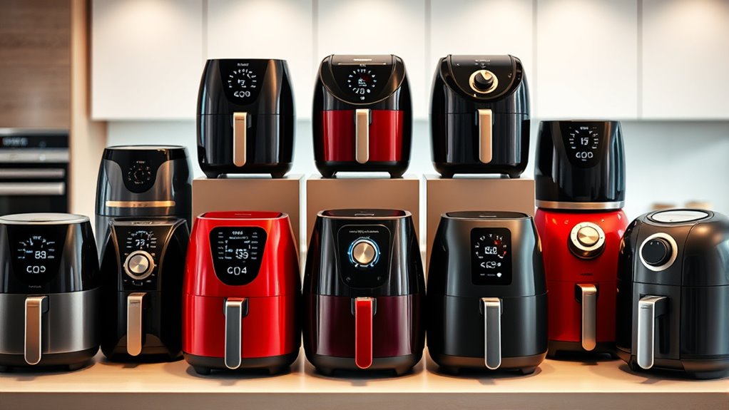 Since durability directly impacts long-term performance, I prioritize air fryers made with high-quality materials like stainless steel or heavy-duty nonstick coatings. These materials resist warping, scratching, and flaking, ensuring the appliance lasts through frequent use. I also look for longer warranties—typically 2-3 years or more—as they reflect the brand’s confidence in their product’s longevity. Customer reviews are invaluable, especially when they mention minimal malfunctions and sturdy construction. Well-made air fryers feature reinforced hinges, robust control panels, and high-quality heating elements designed for durability. Brands that invest in strict quality control and testing tend to produce appliances that withstand daily use without degrading. Ultimately, choosing a brand known for durability means better performance and peace of mind over time.