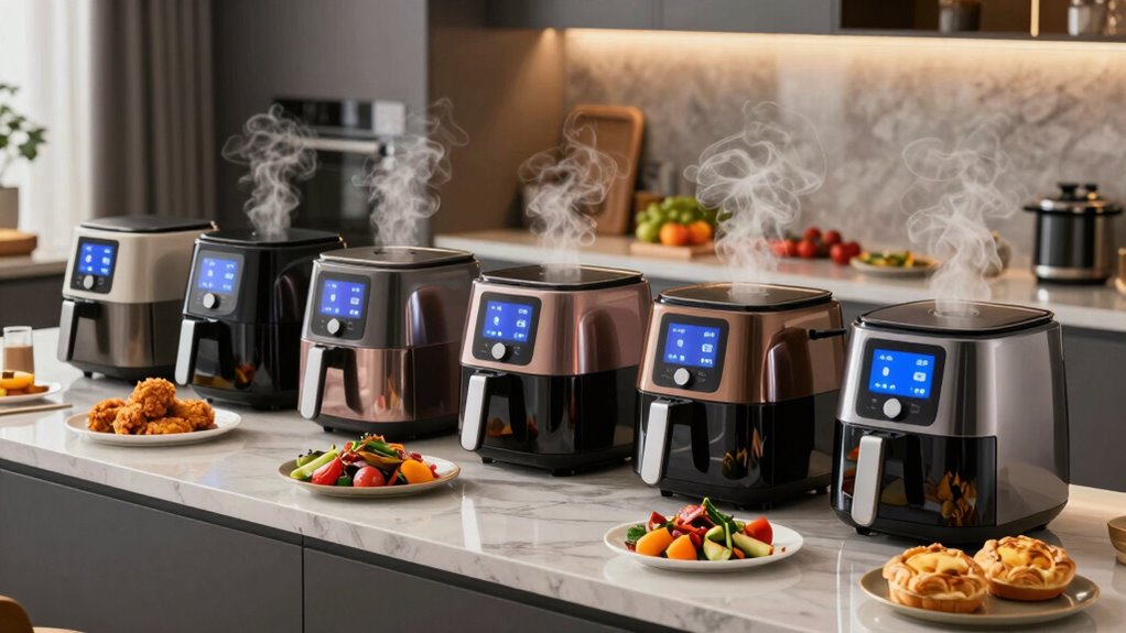 Choosing the right air fryer pressure cooker combo is like finding the perfect dance partner—trustworthy, versatile, and ready to impress. With options spanning from the Instant Pot to Ninja Foodi, you’ll have everything you need to make entertaining effortless. Just remember, the best choice depends on your needs and space. Once you find that perfect match, you’ll wonder how you ever cooked without it—ready to impress, every time.