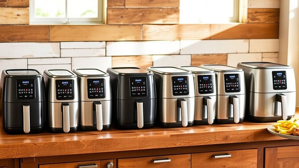 Think of choosing an air fryer like picking a trusty steed for your kitchen adventures. With so many options under $75, you’re equipped to find a reliable companion that delivers crispy goodness without breaking the bank. Whether you need a swift mini or a family-sized powerhouse, there’s a perfect fit waiting. Begin on your culinary journey confident, knowing your new air fryer will be your loyal steed on the road to delicious, healthy meals.