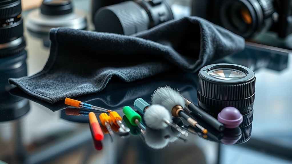Yes, there are eco-friendly and biodegradable cleaning kits available. I’ve found options with natural, plant-based ingredients and reusable cloths that reduce waste. These kits are gentle on your gear and the environment, making them a great choice if you’re conscious about sustainability. I recommend looking for products labeled biodegradable or eco-friendly, and always check reviews to verify they effectively clean without damaging your lenses.