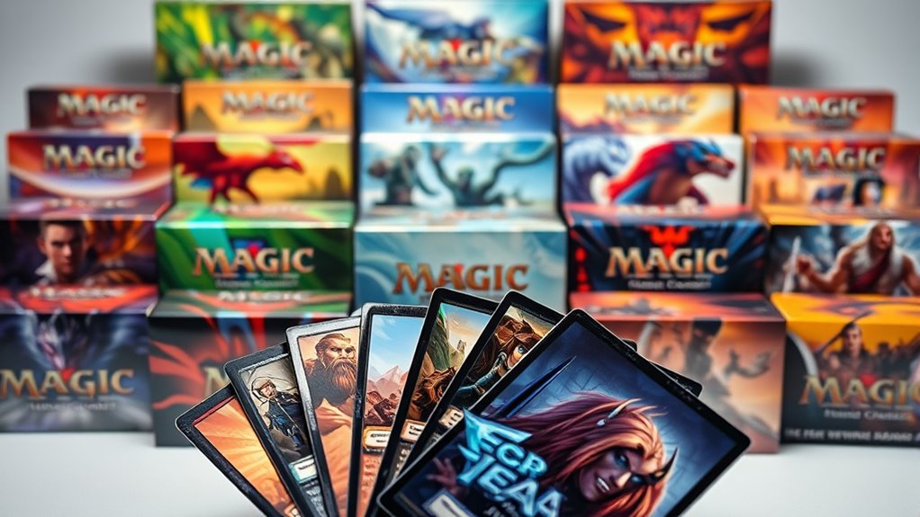 If you’re exploring the top collectible trading card games of 2025, I’ve found that options like Fleer Retro Looney Tunes, Equinox Altered Whispers, and Kuromis Cryptid Carnival stand out for their unique themes, rarity, and gameplay variety. From nostalgic classics to strategic lore-rich sets, these games offer something for every collector and player. If you keep going, you’ll discover detailed insights on what makes these games top picks and how to choose the best one for you.