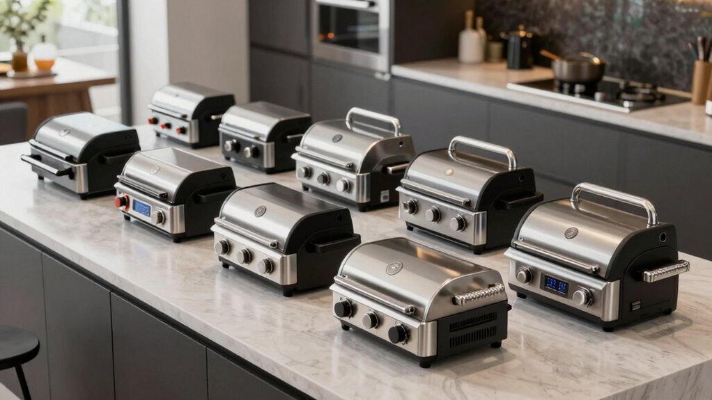 If you’re looking for the 15 best contact grills for 2026, I’ve found options that are versatile, durable, and packed with safety features. From the Cuisinart Electric Griddler and George Foreman 4-Serving Grill to the Chefman Panini Press and other multi-functional models, there’s something for every kitchen. They offer easy cleaning, adjustable temp controls, and safety features. Stick with me, and I’ll share all the detailed options to help you choose the perfect one.