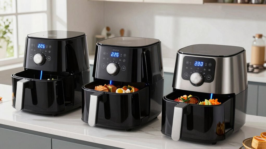 They’re definitely up to the task for large family meals. Double stack air fryers with probes let me cook more food at once, saving time and effort. I love that I can monitor the temperature precisely, ensuring everything’s cooked perfectly. It’s a real game-changer, especially when feeding a crowd. If you’re looking to make big batches without sacrificing quality, these fryers are a smart choice.