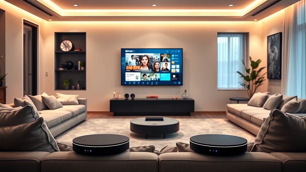 Think of Eero systems as your digital fortress. They include built-in security features like WPA3 encryption, which keeps hackers at bay, and automatic updates that patch vulnerabilities like a vigilant guard. Plus, they offer threat detection and parental controls, giving you peace of mind. I love how they seamlessly blend top-tier security with easy usability, ensuring my home network stays safe without sacrificing convenience.