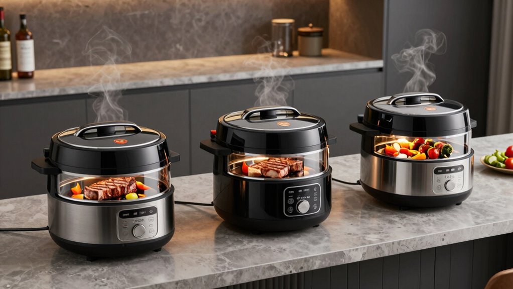 In the end, choosing the right electric pressure cooker for indoor grilling feels a bit like finding a secret passage in an old castle—it’s about discovering what fits your needs perfectly. Whether you go for the Nuwave Duet or Ninja Foodi, these gadgets make indoor grilling easier and more enjoyable. Don’t let the tech be a labyrinth; instead, see it as your modern Excalibur, ready to turn your kitchen into a culinary kingdom.