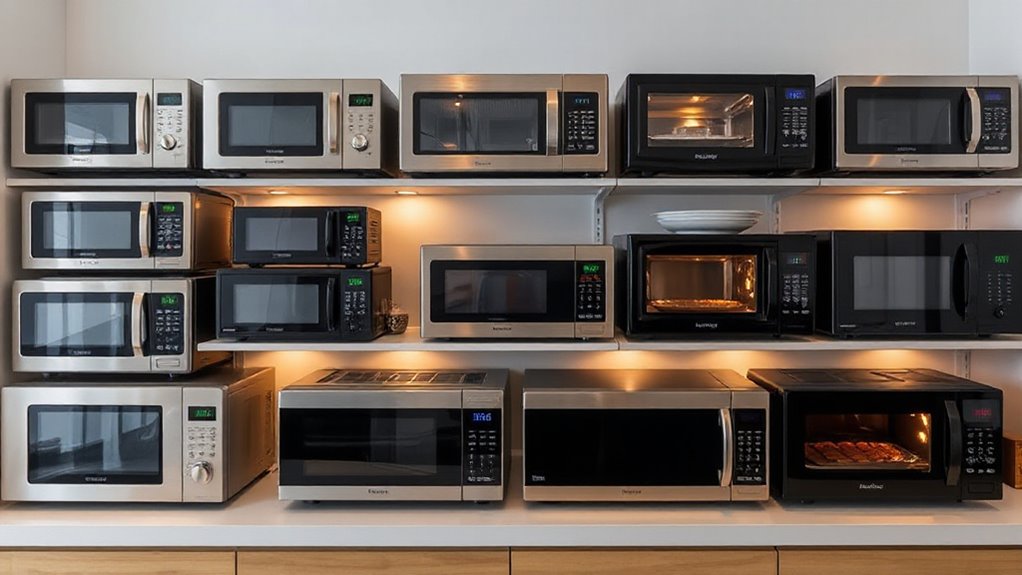 When selecting an even heating microwave convection oven combo, I consider key factors like the type of heating technology, power level, and capacity to match my cooking needs. Safety features and ease of use are also vital to guarantee a smooth experience. By focusing on these points, I can find a model that’s reliable, efficient, and perfect for my kitchen.