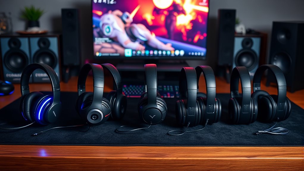If you’re looking to elevate your gaming experience in 2025, choosing the right noise-canceling headset is essential. I find that models with 2.4GHz wireless connectivity offer seamless compatibility with popular platforms like PS5, PS4, and PC. High-fidelity audio and effective noise-canceling microphones enhance communication with teammates. Plus, comfort features like lightweight designs and breathable cushions make long gaming sessions enjoyable. Stick around to discover the top picks that I’ve put together for you!