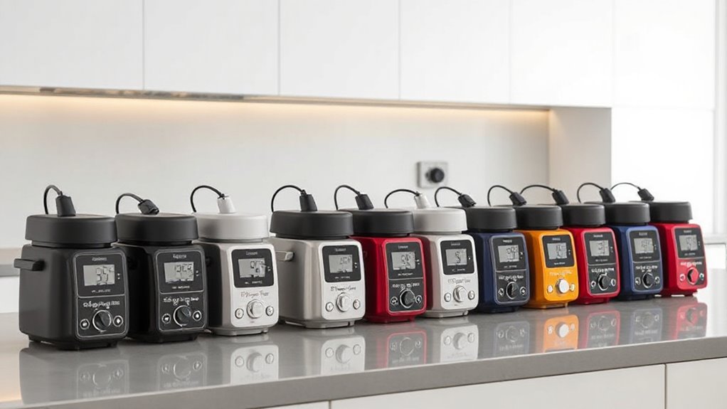 You might be surprised—noise levels vary quite a bit among these models. Some are whisper-quiet, barely noticeable, perfect for early mornings or late-night cooking. Others produce a gentle hum that might be noticeable but never disruptive. I’ve found that quieter models really elevate the experience, making your kitchen more peaceful. So, if silence matters to you, I recommend checking the noise specs before making a choice.