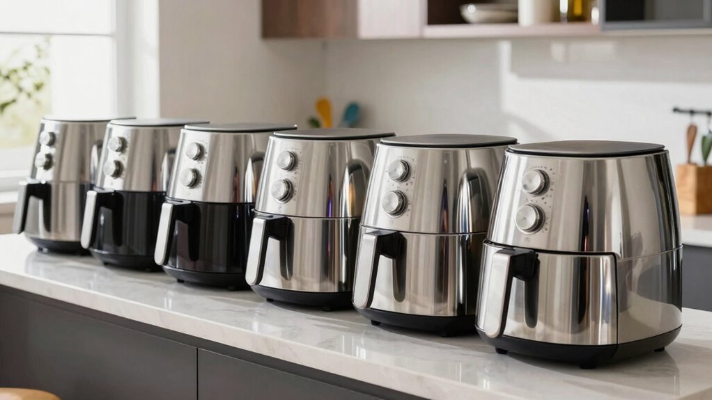 Did you know that stainless steel air fryers last about 2-3 times longer than non-stick ones? I find that impressive. In my experience, stainless steel models are more durable, easier to clean, and better for health since they don’t chip or scratch like non-stick surfaces. Plus, they resist stains and odors better. If you want longevity and safer cooking, I’d definitely choose stainless steel over non-stick options.