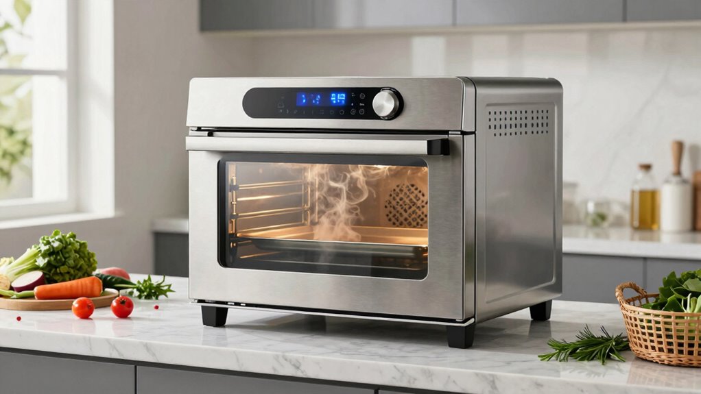 Ever wonder what makes operating a steam countertop oven straightforward? It all comes down to a user-friendly design. An intuitive control panel with clear labels and simple menus makes navigation effortless, regardless of your skill level. Features like preset cooking modes and programmable timers cut down on manual adjustments, saving you time and effort. A digital display with touch controls provides quick access to settings, making the process smooth. Plus, clear visibility through a glass door or interior light helps you monitor food without opening the oven, preventing disruptions. Easy-to-clean surfaces and dishwasher-safe accessories further simplify maintenance, so you spend less time cleaning and more time enjoying perfectly cooked meals. All these factors combine to make your cooking experience hassle-free.