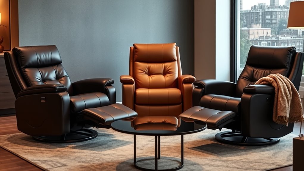You’ll be amazed at the safety features in top-rated zero-gravity recliners! They include sturdy locking mechanisms that prevent accidental reclining, anti-tip bases for unbeatable stability, and plush, fire-resistant upholstery for peace of mind. Some models even have built-in safety sensors that stop reclining if you’re not seated properly. Trust me, these features make relaxing feel not just luxurious but incredibly secure—making your comfort worry-free!