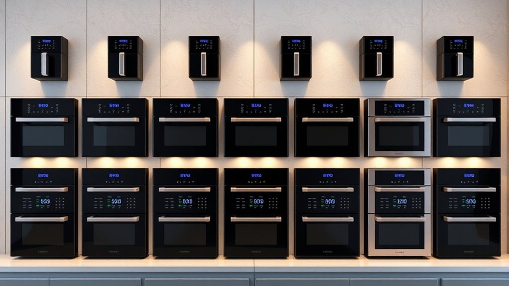 If you’re looking to upgrade your kitchen in 2025, I recommend checking out the top Whall air fryer ovens that offer versatility, large capacities, and sleek designs. From compact models perfect for small spaces to multi-functional appliances that replace several devices, these options can handle everything from baking to dehydrating with ease. If you keep exploring, you’ll discover the best options tailored to your space and cooking style.